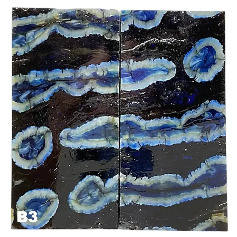 These Fossils are genuine mammoth fossils. They date all the way back to the last ice age (10,000-40,000 BP). Needless to say, this rare material is in itself very special. For that reason it also makes unique products even more special. Occasionally, tusks, molars and bones are found from these iconic mammoths.  All of the treatments stabilize the fossils with vacuum, high pressure and strong resins. These Fossils are commonly used for knife handle scales, pistol grips, jewelry, inlays, accessories and other precious objects.