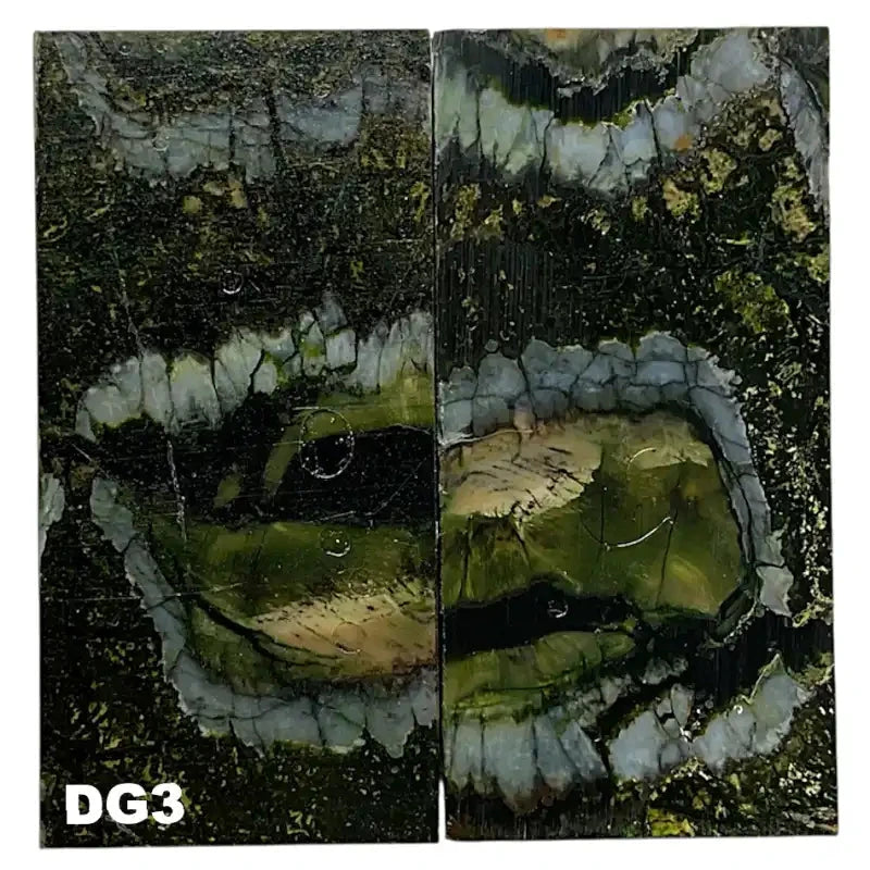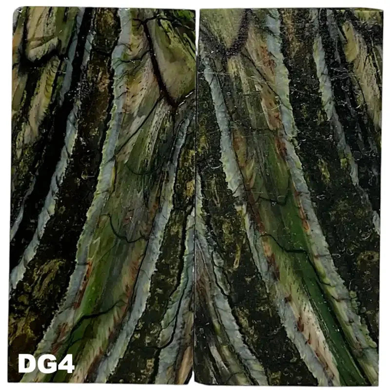 These Fossils are genuine mammoth fossils. They date all the way back to the last ice age (10,000-40,000 BP). Needless to say, this rare material is in itself very special. For that reason it also makes unique products even more special. Occasionally, tusks, molars and bones are found from these iconic mammoths.  All of the treatments stabilize the fossils with vacuum, high pressure and strong resins. These Fossils are commonly used for knife handle scales, pistol grips, jewelry, inlays, accessories and other precious objects.