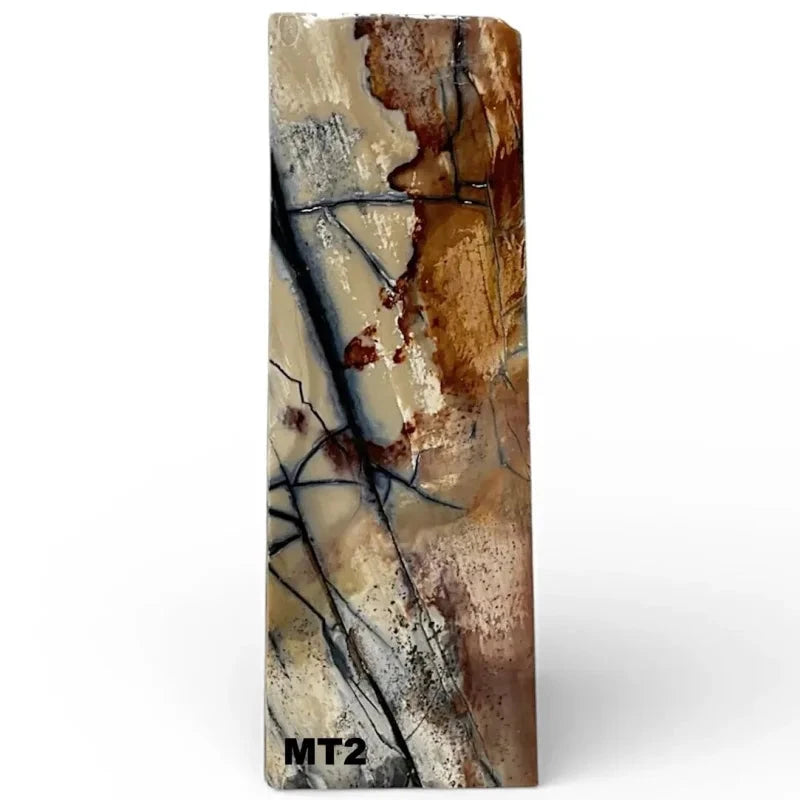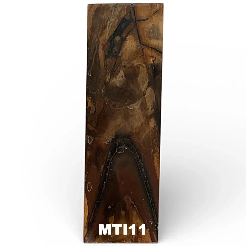 These Fossils are genuine mammoth fossils. They date all the way back to the last ice age (10,000-40,000 BP). Needless to say, this rare material is in itself very special. For that reason it also makes unique products even more special. Occasionally, tusks, molars and bones are found from these iconic mammoths. All of the treatments stabilize the fossils with vacuum, high pressure and strong resins. These Fossils are commonly used for knife handle scales, pistol grips, jewelry, inlays, accessories and other precious objects.