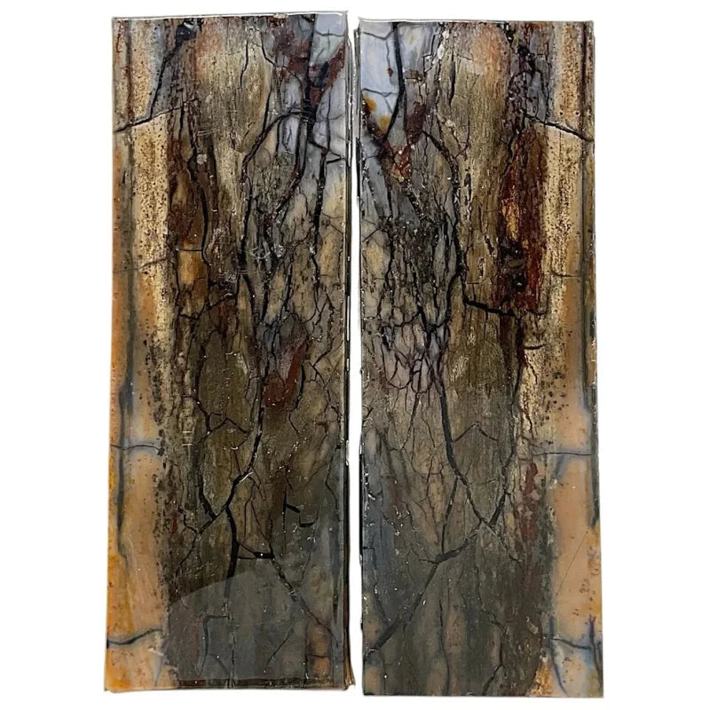 These Fossils are genuine mammoth fossils. They date all the way back to the last ice age (10,000-40,000 BP). Needless to say, this rare material is in itself very special. For that reason it also makes unique products even more special. Occasionally, tusks, molars and bones are found from these iconic mammoths.  All of the treatments stabilize the fossils with vacuum, high pressure and strong resins. These Fossils are commonly used for knife handle scales, pistol grips, jewelry, inlays, accessories and other precious objects.