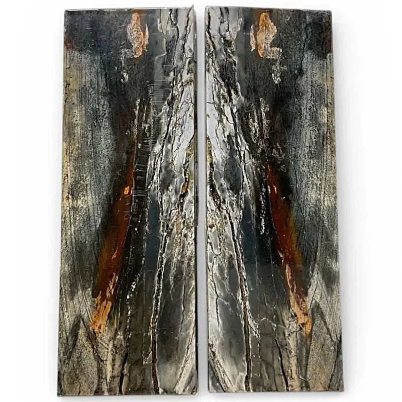 These Fossils are genuine mammoth fossils. They date all the way back to the last ice age (10,000-40,000 BP). Needless to say, this rare material is in itself very special. For that reason it also makes unique products even more special. Occasionally, tusks, molars and bones are found from these iconic mammoths.  All of the treatments stabilize the fossils with vacuum, high pressure and strong resins. These Fossils are commonly used for knife handle scales, pistol grips, jewelry, inlays, accessories and other precious objects.