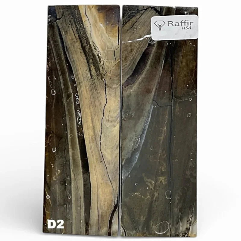 These Fossils are genuine mammoth fossils. They date all the way back to the last ice age (10,000-40,000 BP). Needless to say, this rare material is in itself very special. For that reason it also makes unique products even more special. Occasionally, tusks, molars and bones are found from these iconic mammoths. All of the treatments stabilize the fossils with vacuum, high pressure and strong resins. These Fossils are commonly used for knife handle scales, pistol grips, jewelry, inlays, accessories and other precious objects.
