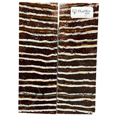 Raffir® Fossils are genuine mammoth fossils. They date all the way back to the last ice age (10,000-40,000 BP). Needless to say, this rare material is in itself very special. For that reason it also makes unique products even more special. Occasionally, tusks, molars and bones are found from these iconic mammoths. Therefore we have developed a unique preservation treatment for each of these. All of the treatments stabilize the fossils with vacuum, high pressure and strong resins. Meanwhile, the resins we use differ depending on the material. Nonetheless, they all result in a stronger material that is useful for a wide array of luxury products. Raffir® Fossils are most commonly used for fine handles. We also recommend them for jewelry, inlays, accessories and other precious objects.